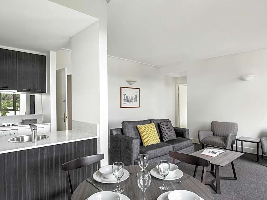 This apartment features a full kitchen, separate lounge/dining areas and a bathroom.